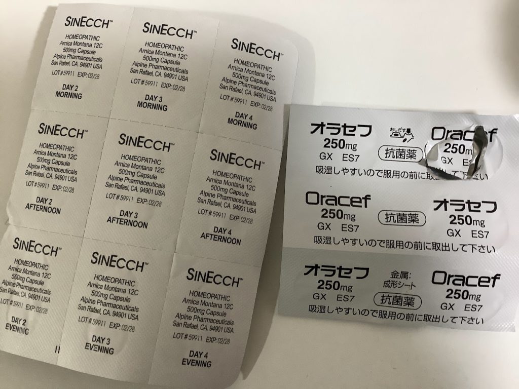 炎症を抑える抗生物質の薬とロキソニンを処方されている。効いてるのかはわからないけど、言われたとおりのタイミングで飲む。