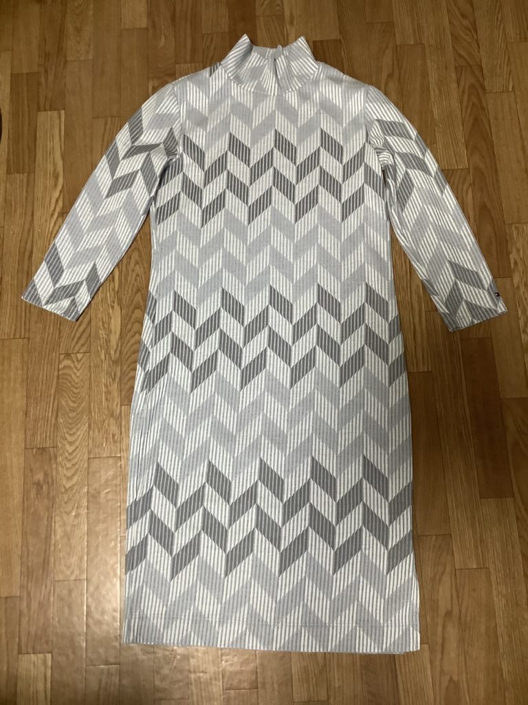 値札にバイカラークレニットワンピースと書いてあったのでそのまま記載した。そういう名前だとは知らなかったけど、新品で買うと服の名前を知ることができて勉強になる。